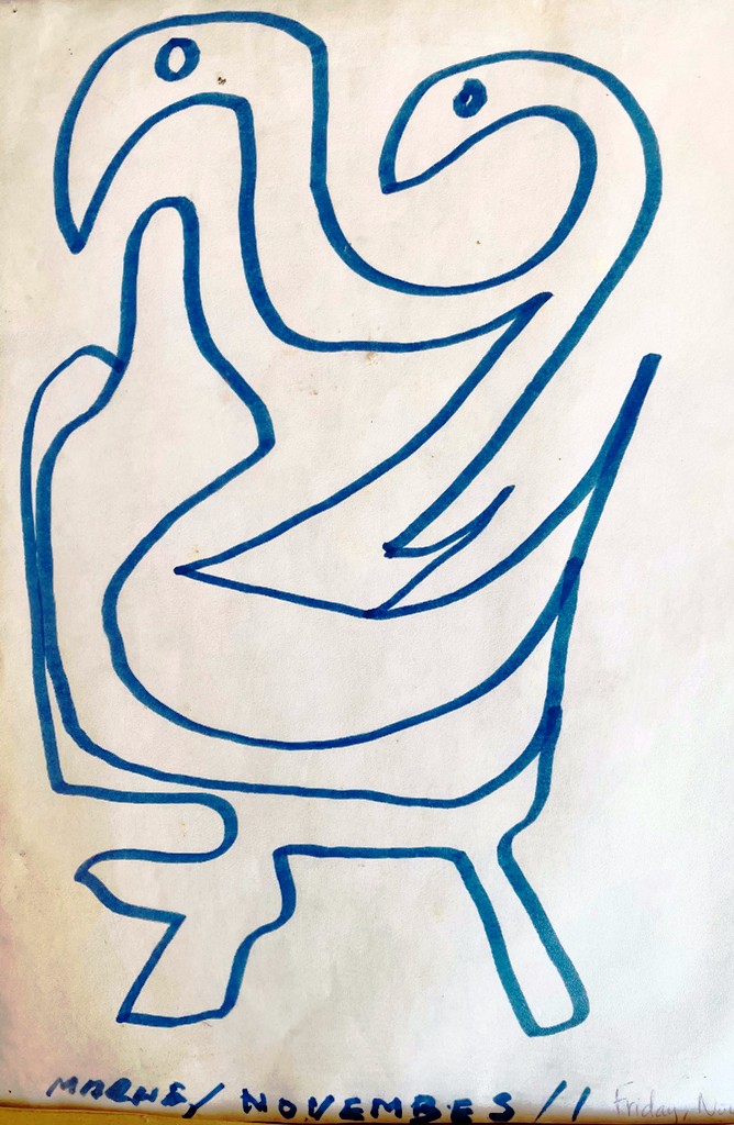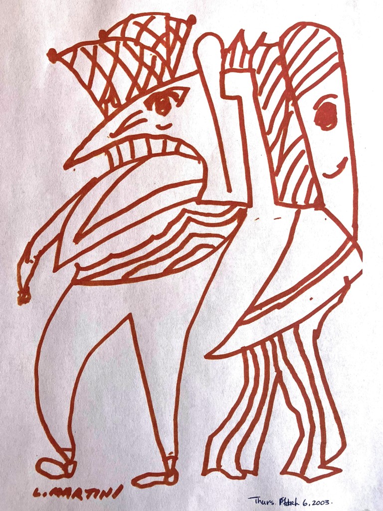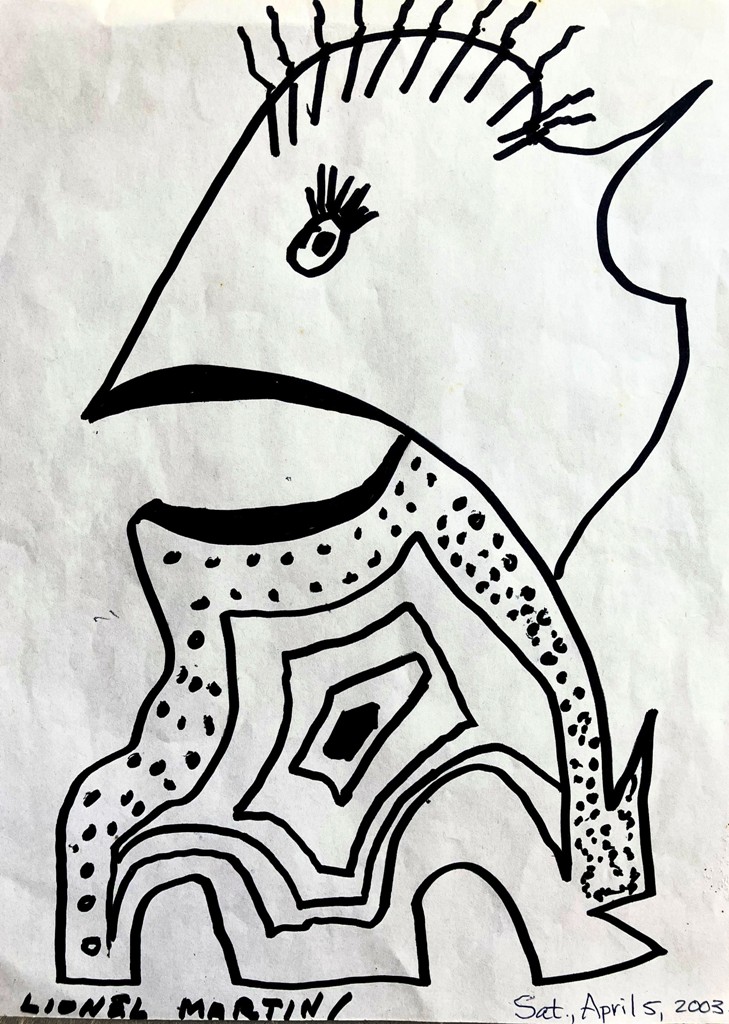 Lionel always had a gift for drawing, but did not practice it regularly, being a sort of closet artist. After his cerebrovascular accident, part of his recovery therapy was to express himself through drawing. For years, he made a different drawing everyday and produced thousands. Many of these were reproduced as wood carvings by Cuban artist Joya. In this section you will find a selection of Lionel’s drawings and the matching carvings by Joya.